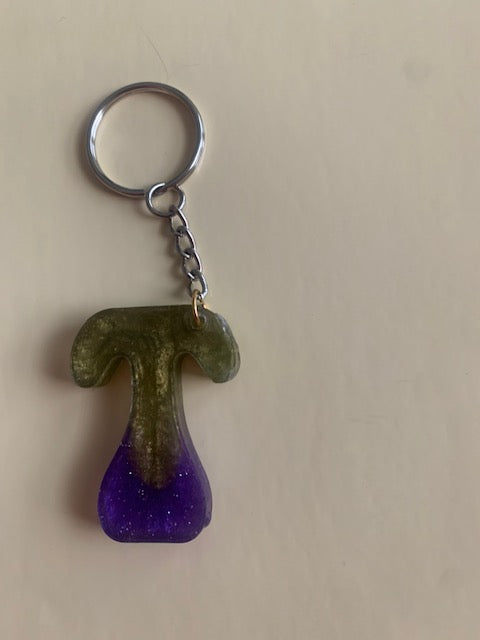 New made to order UV resin letter T alphabet keychain. Color Gold and Purple.