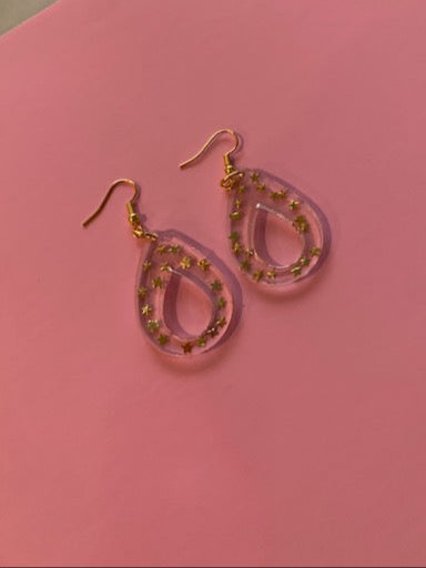 New made to order star dangle earrings with a round end made from uv epoxy resin.