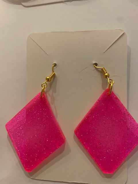 New made to order hot Pink sparkle dangle earrings made from uv resin. Very pretty and fashionable.