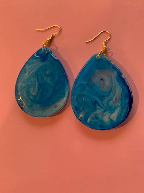 New made to order dangle Marble Blue Earrings, Very pretty and fashionable.
