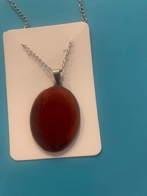 New made to order Reddish Brown oval UV resin necklace with 24 inch stainless steel necklace,
